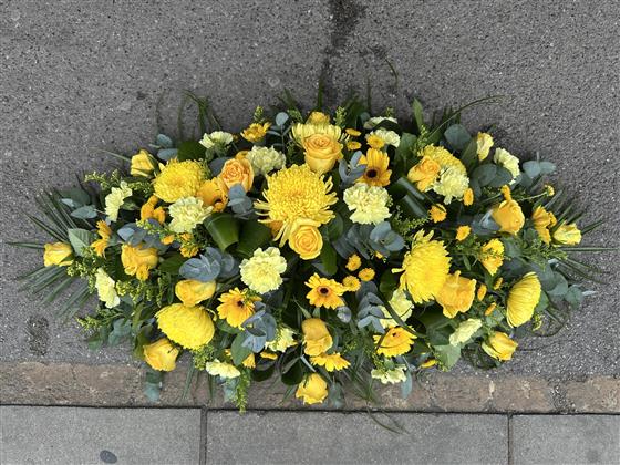 All yellow Casket Spray add picture this is a 3 foot Casket but can also be made in a 4 for, 5 and 6 foot