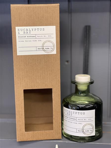 50ml Glass Filled Reed Diffuser in Eucalyptus & Bay Scent