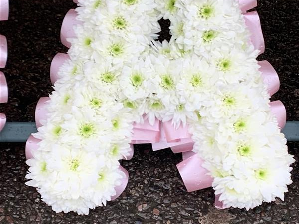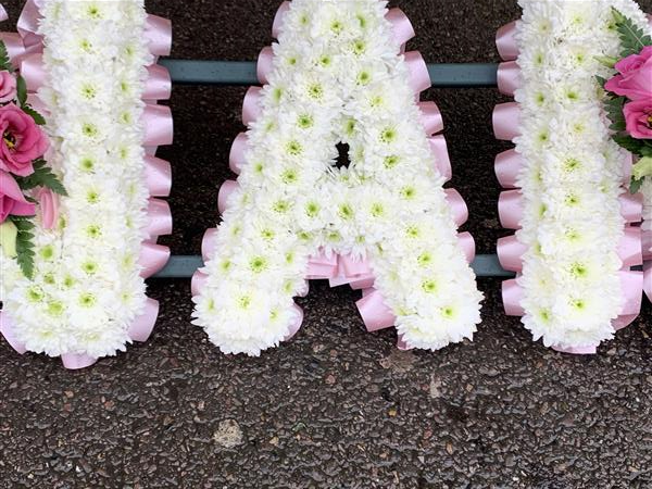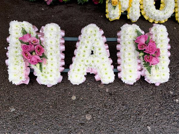 Nan tribute can be made in all different variations of colour using different colour ribbons and different colours flowers in the sprays,