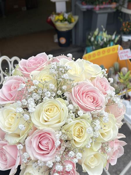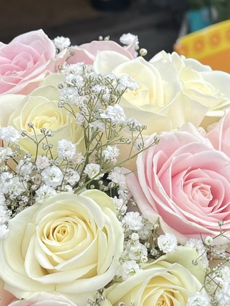 Pale pink and white rose with gyp bridal bouquet